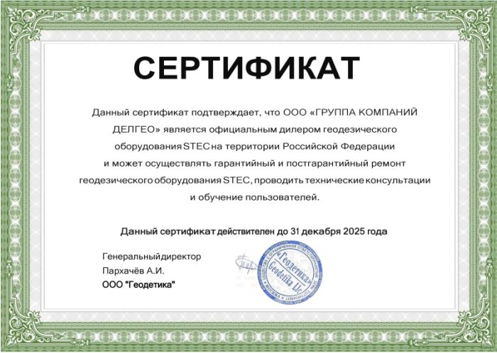 Сертификат официального дилера Geomax